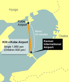 High Speed Ferry "Bay Shuttle" connects Kansai International Airport (KIX) and Kobe Airport in about 30 minutes by sea.