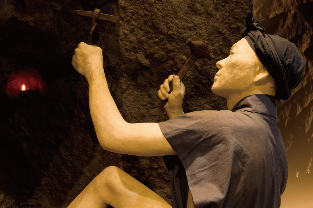 The walls of the Ryugenji Mabu Mine Shaft still show marks left by miners’ chisels centuries ago. However, these walls are comparatively smooth where they were shaped by hand. Other parts of the tunnel bear more recent marks of the rougher excavation techniques used to widen the passage in the Meiji era (1868–1912).