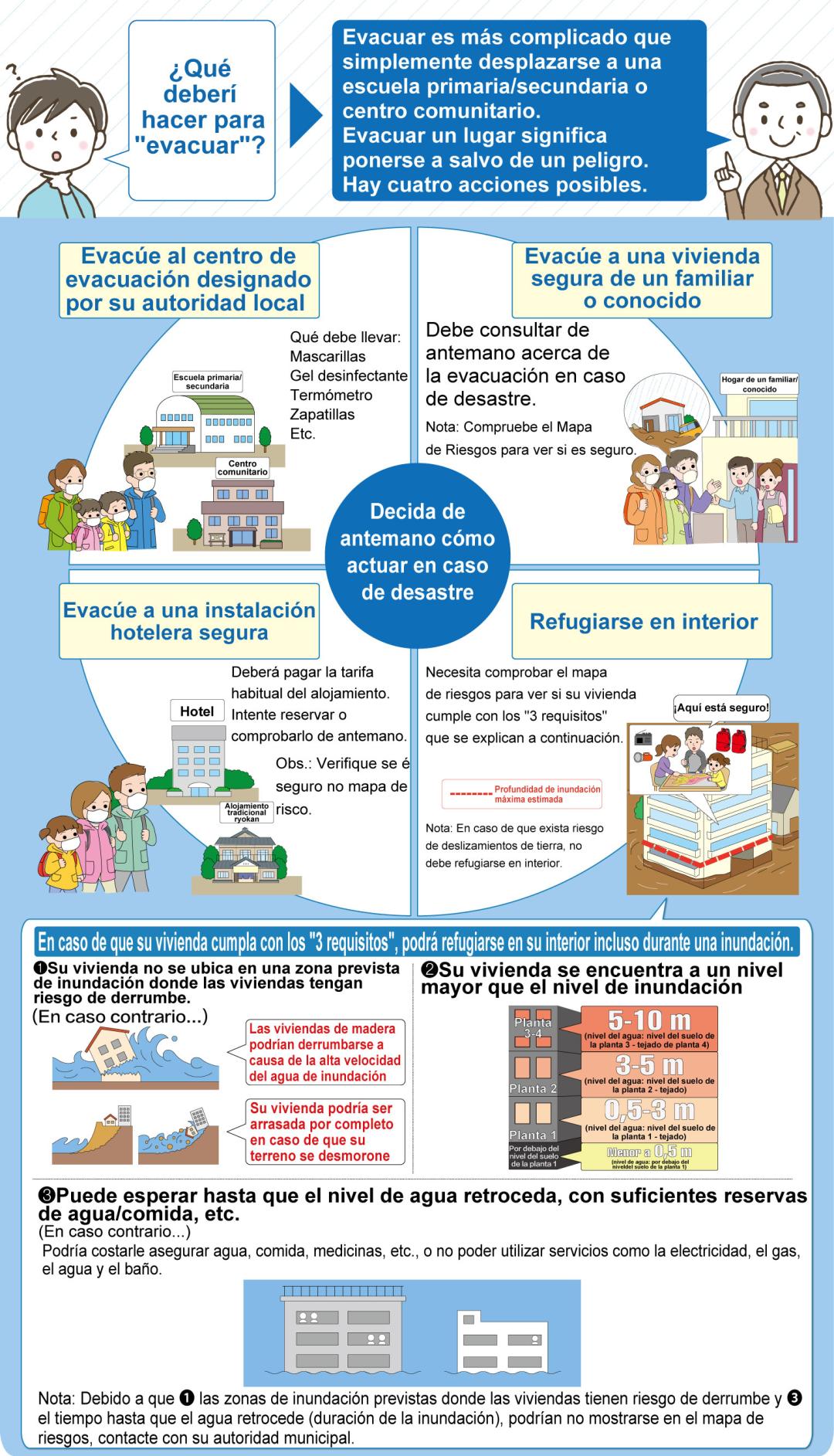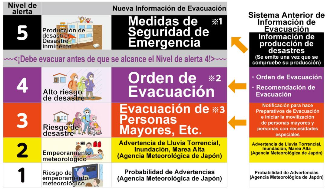 Nota 3: El Nivel de alerta 3 indica el momento en el que las demás personas, aparte de personas mayores, etc., deberán comenzar a tomar acciones o prepararse para cuando sea necesario evacuar, o bien, evacuar bajo su propio criterio en caso de que sientan que existe un riesgo para sus vidas.