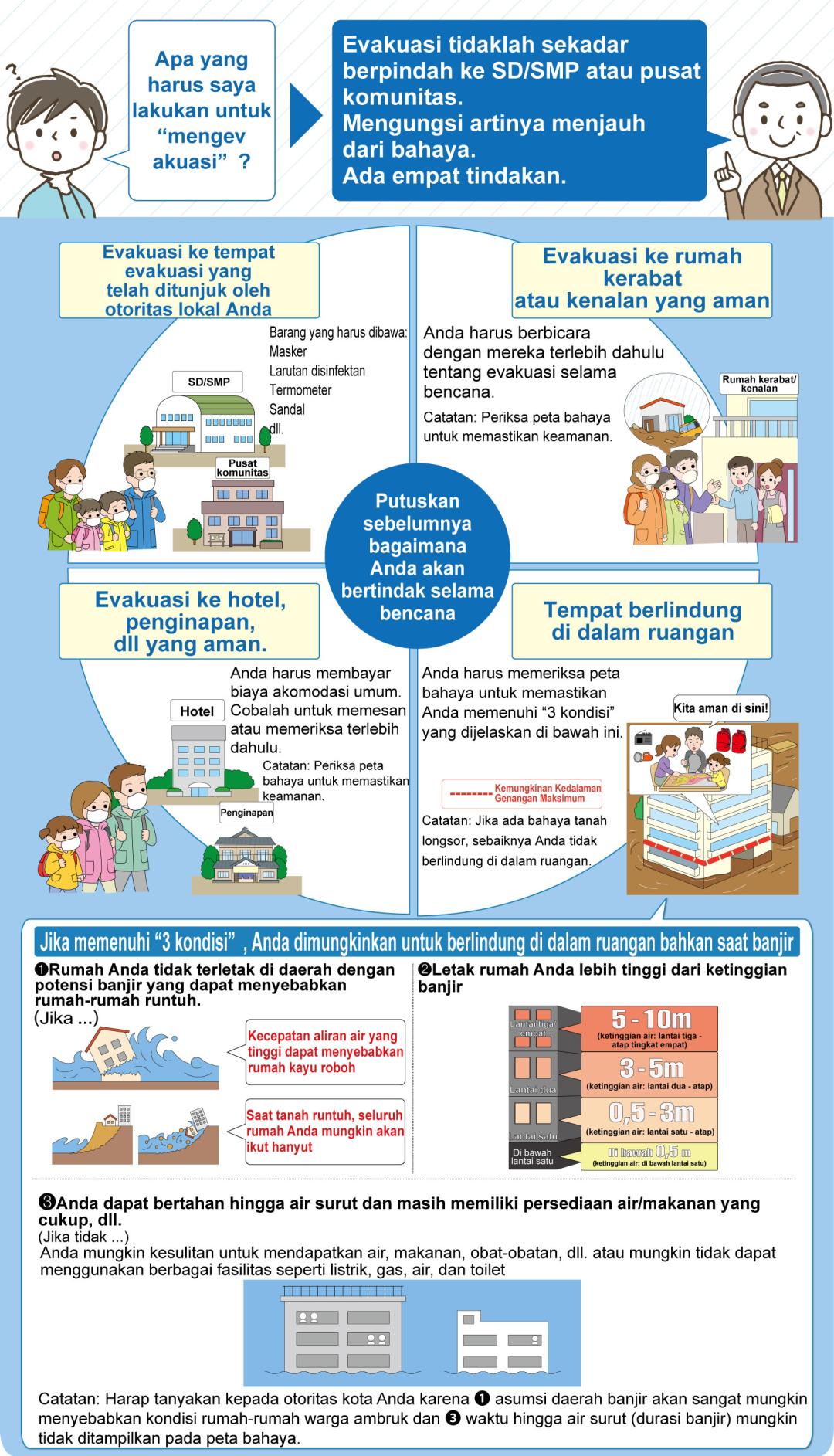 Catatan 2: Instruksi evakuasi akan diumumkan pada waktu yang sama seperti anjuran evakuasi yang diumumkan oleh sistem sebelumnya.