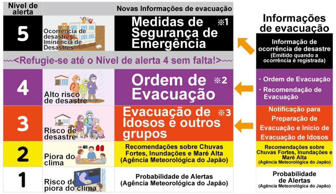 Obs. 3: O Nível de alerta 3 é o momento para que outras pessoas além dos idosos, etc., possam ajustar suas condutas e preparar-se para a evacuação ou refugiar-se voluntariamente, caso sentirem perigo para suas vidas.