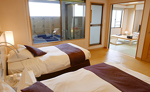 19 Japanese-style rooms, 4 Japanese-style bed types, 10 Western-style rooms (1 barrier-free room), 2 Japanese-Western style rooms, 5 special Japanese-Western style rooms with open-air baths