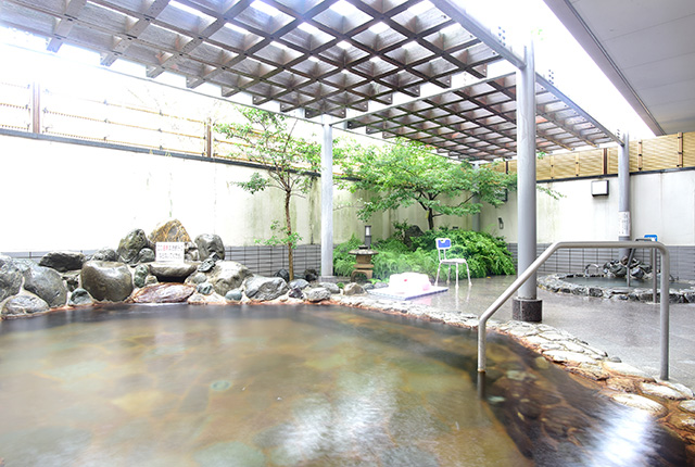 From the large communal bath with a view of the inn, which is in a great location to enjoy Suigo Yanagawa