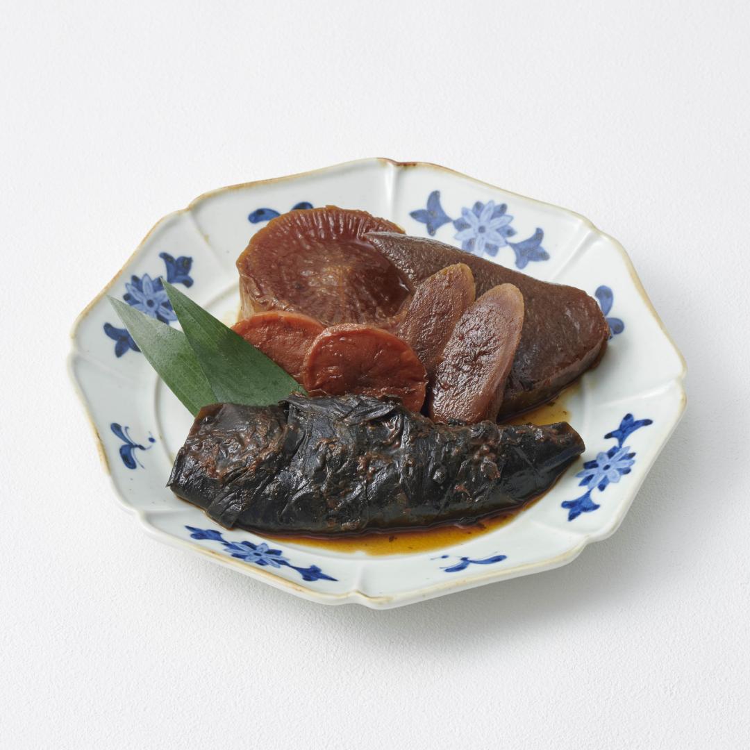 A local dish of Hamamachi, Kashima City, where the culture of eating freshwater fish remains strong. It is made by stewing crucian carp wrapped in kelp with seasonal vegetables. It is customary to cook it in a large pot and serve it to neighbors on special occasions. On January 20, the 20th day of the New Year, there is a custom to make offerings to Ebisu to pray for a good catch, business success, and the safety of the family.