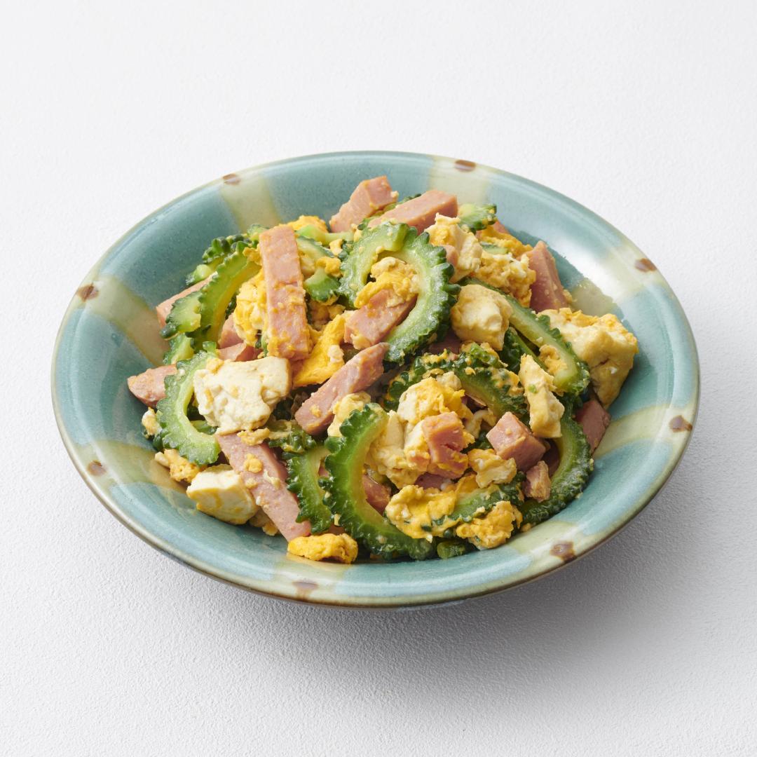Champuru, which means “mixed up” or “jumbled” in the Okinawa dialect, is a typical Okinawan dish made from stir-fried island tofu and various ingredients. Goya champuru is made from goya (bitter melon) and is highly valued for its highly heat-resistant vitamin C content, which helps prevent summer fatigue.