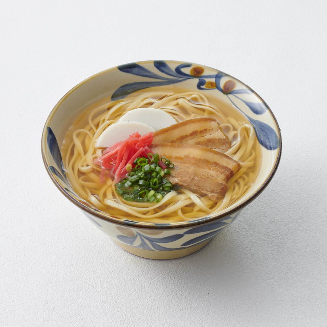 It features thick noodles made entirely from wheat flour instead of buckwheat flour, and a rich broth made from pork bones and bonito flakes. The usual ingredients were traditionally simmered pork belly, stick kamaboko fish paste, green onions, and pickled ginger, but in recent years there have been various types of soups and ingredients, such as spare rib soba and cartilage spare rib soba.