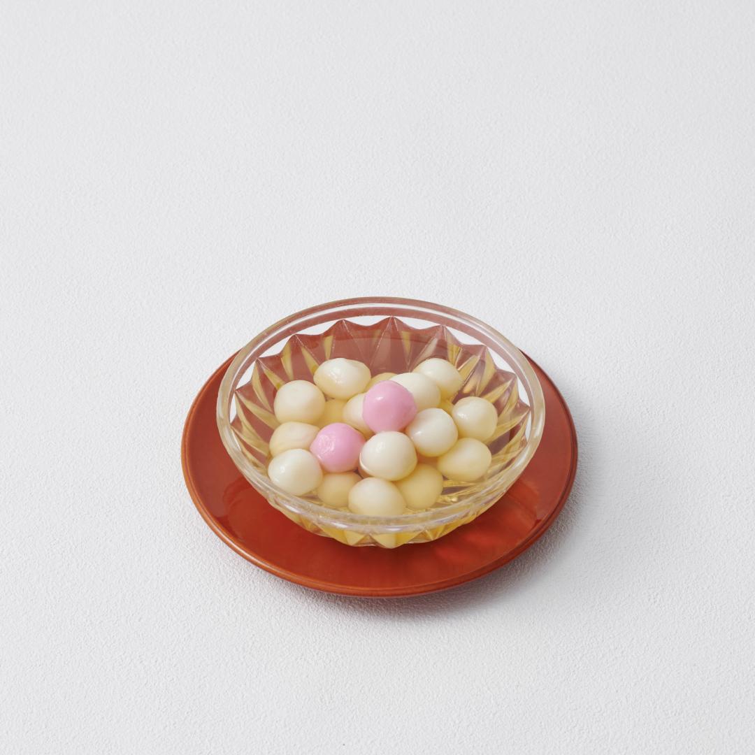 It is said that in the area of Shimabara in the past, dumplings made from the flour of rice fragments were preserved in spring water and eaten with syrup made from sugar. Before long, the glutinous rice, which was the main ingredient, was exposed to water on extremely cold days, which led to the name kan (cold) zarashi.