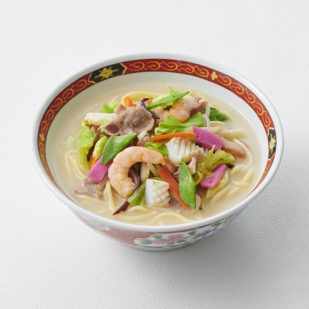 A famous specialty of Nagasaki known nationwide. In 1899, the owner of a Chinese restaurant came up with a cheap and nutritious dish for Chinese students studying abroad. It is said to have originated with stir-fried vegetables and meat scraps mixed with Chinese noodles and soup, simmered into a hearty stew.