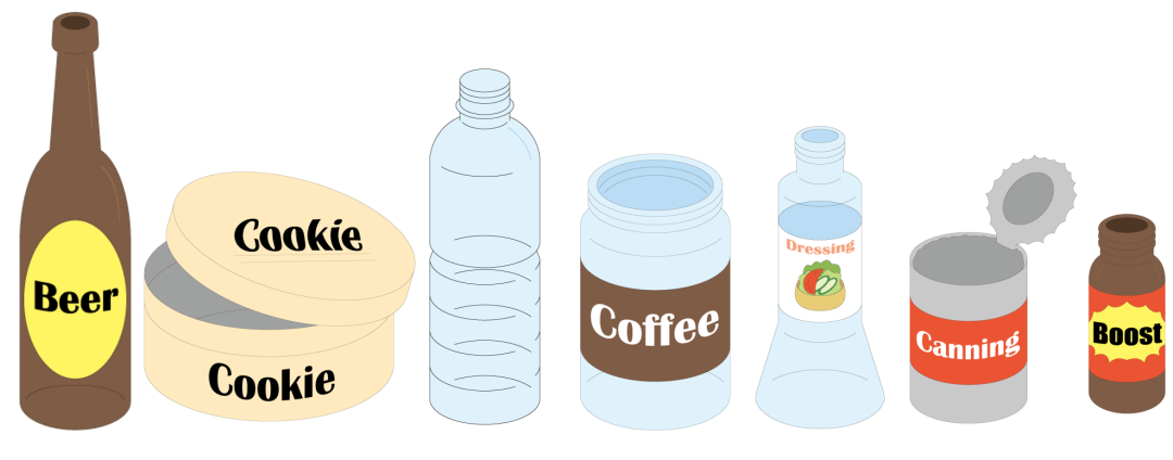Cans, Glass Bottles and Jars, PET Bottles