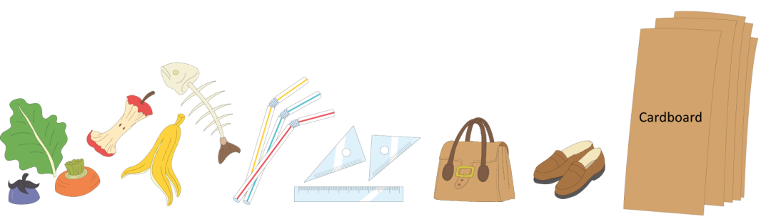 Please place food waste, paper waste, leather, fabrics, plastic items other than containers and packaging, wood waste, and other items in a designated garbage bag for burnables, and put it out at the Clean Station. Do not place liquids, such as leftover soup or cooking oil, directly in a designated garbage bag. Dispose of soup in the sink. Soak cooking oil in paper or fabric, or solidify it with a cooking oil coagulant, then place it in a small plastic bag before putting it in the designated garbage bag for burnables. Cooking oil coagulant can be purchased at supermarkets. Drain food waste well to reduce its water content before disposing of it. Place diapers and pet pads in a plastic bag first, then in a designated garbage bag for burnables, and put them out at the Clean Station. Cardboard and used books can be disposed of in a designated garbage bag for burnables. However, putting them out at the Clean Station without placing them in the designated garbage bag is against the rules. For paper, cardboard, and fabrics, there are different collection methods other than burnable garbage collection. Please refer to the “Group Recycling Collection” column. |